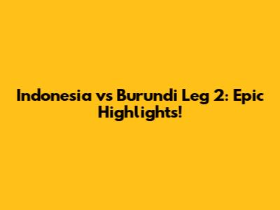 Indonesia Vs Burundi Leg 2: Epic Highlights!