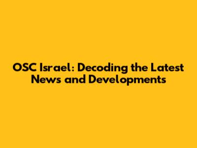 OSC Israel's Impact: News, Updates, And Insights