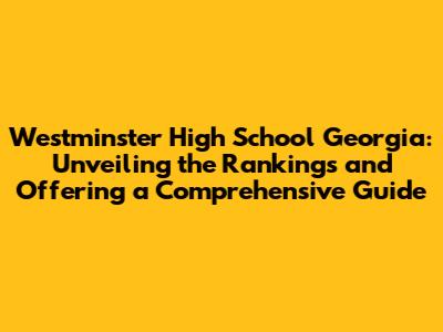 Westminster High School Georgia: Rankings & Guide